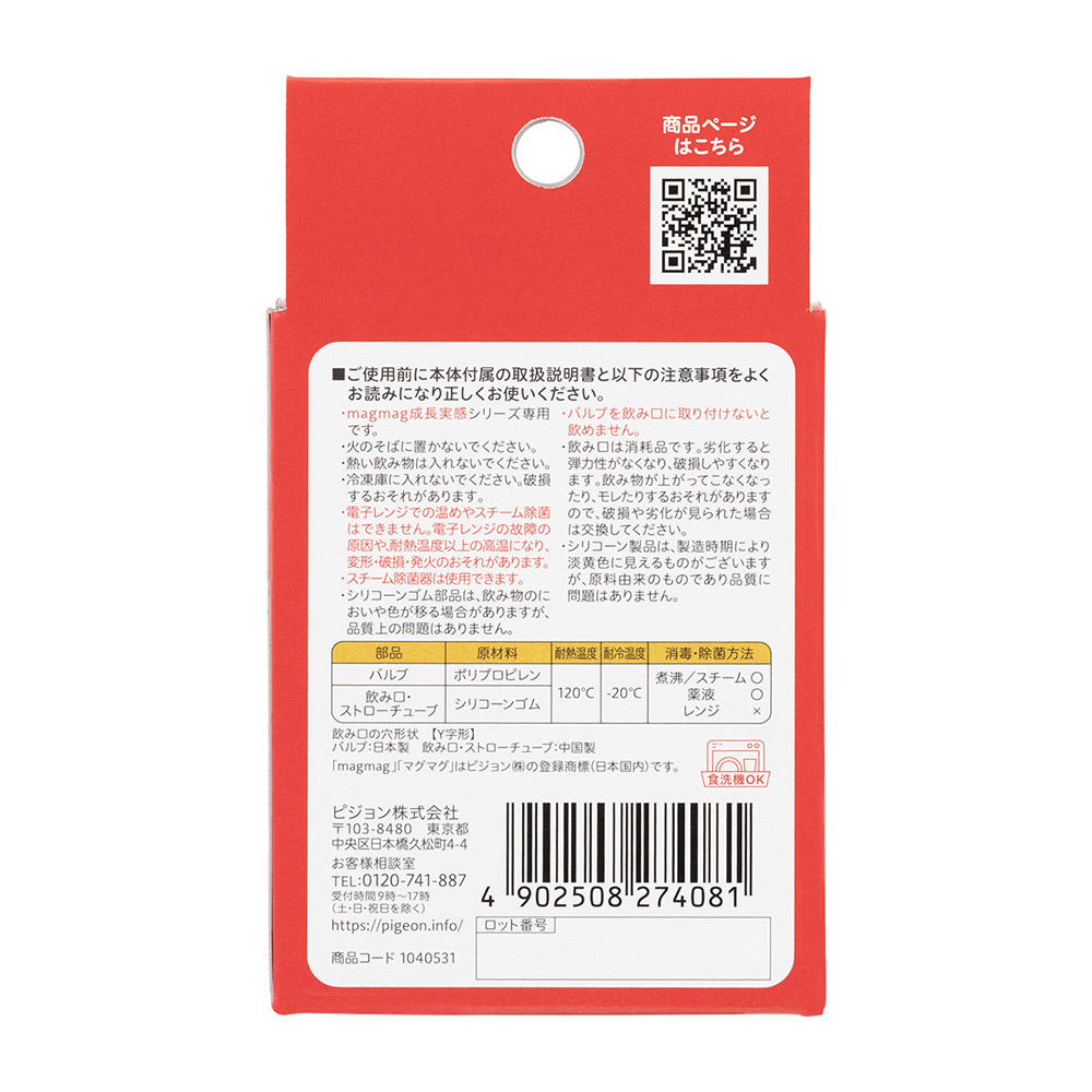 | 原材料 | バルブ:ポリプロピレン 飲み口・ストローチューブ:シリコーンゴム |