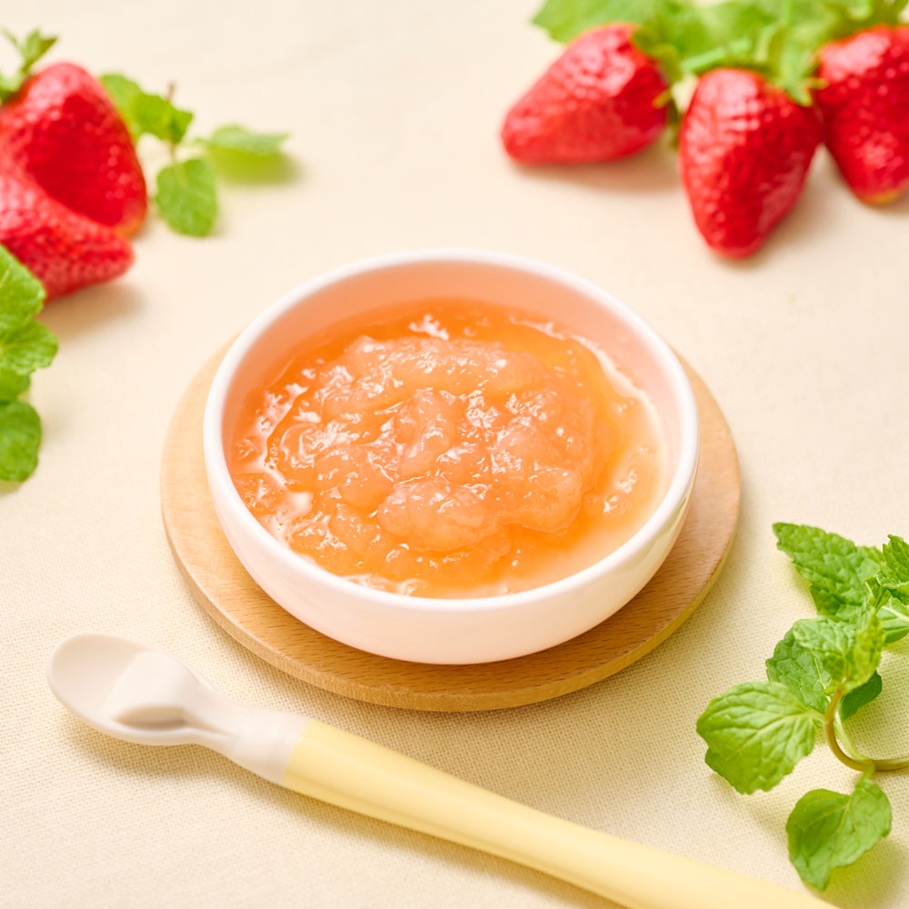 6ヵ月頃から。厳選した国産くだものでつくった赤ちゃんのためのスムージー。
