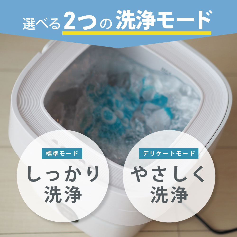 水と洗剤や漂白剤を入れてボタンを押すだけ10分。本体底面の回転羽根によるかくはん水流のもみ洗いによって、従来のつけ置きだけでは落ちにくい汚れを落とします。