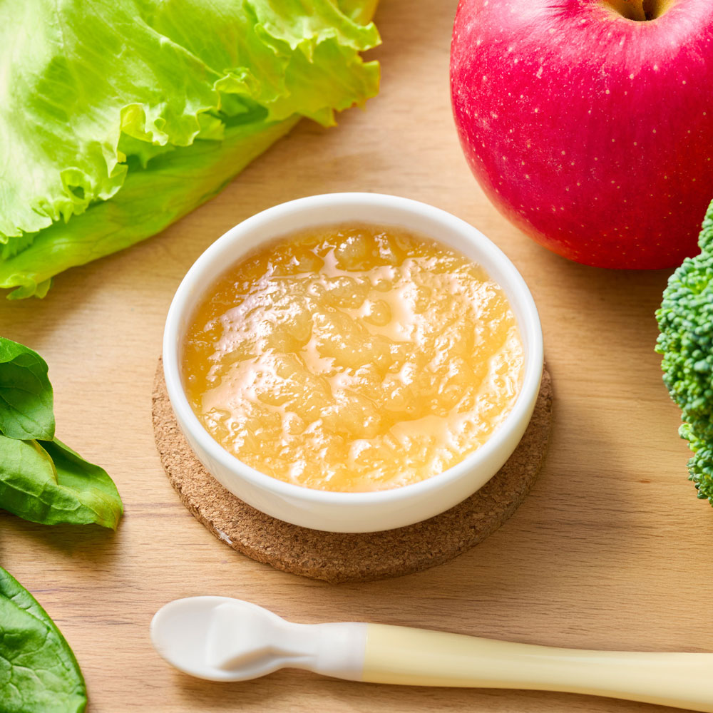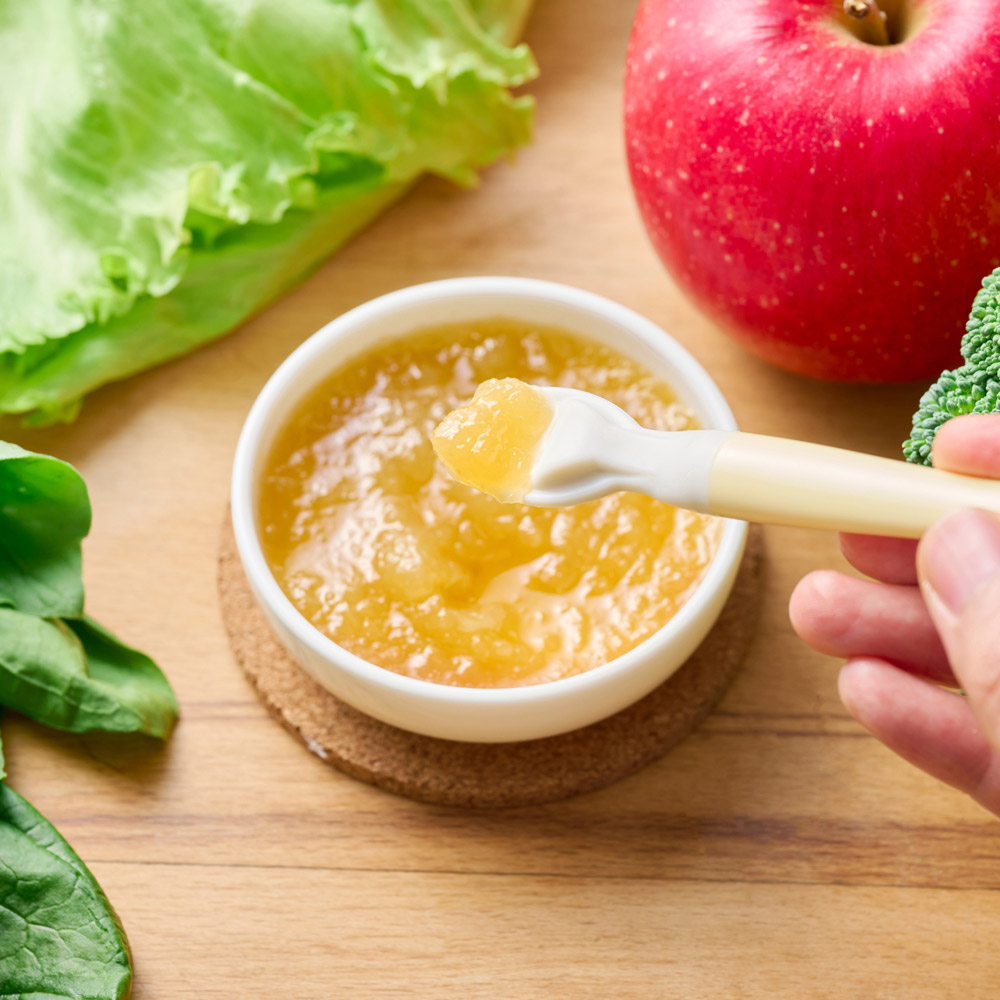 | 原材料名 | すりおろしりんご(国内製造)、りんご濃縮果汁、ほうれん草汁、レタス濃縮汁、ブロッコリー濃縮汁、寒天/pH調整剤、ゲル化剤(増粘多糖類)、乳化剤 |
