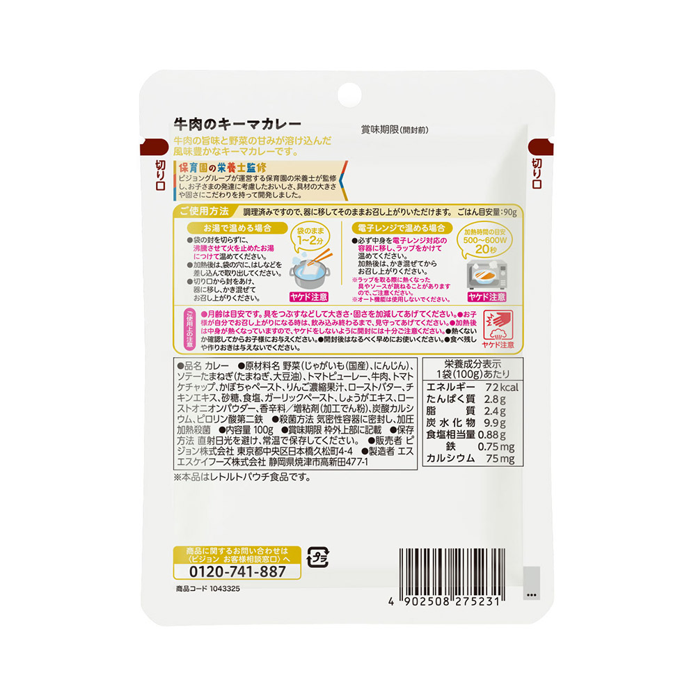 | 購入について | 保育園の栄養士監修 幼児食レトルト 牛肉のキーマカレー 公式オンラインショップの購入はこちら |
