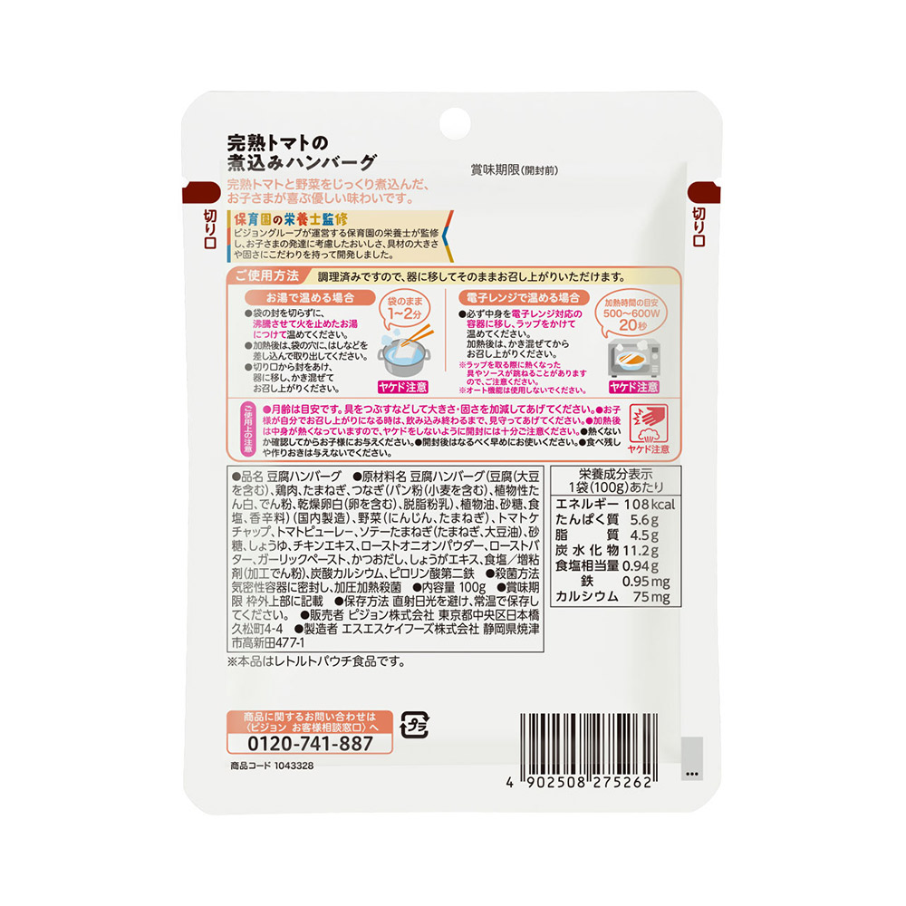 | 購入について | 保育園の栄養士監修 幼児食レトルト 完熟トマトの煮込みハンバーグ 公式オンラインショップの購入はこちら |