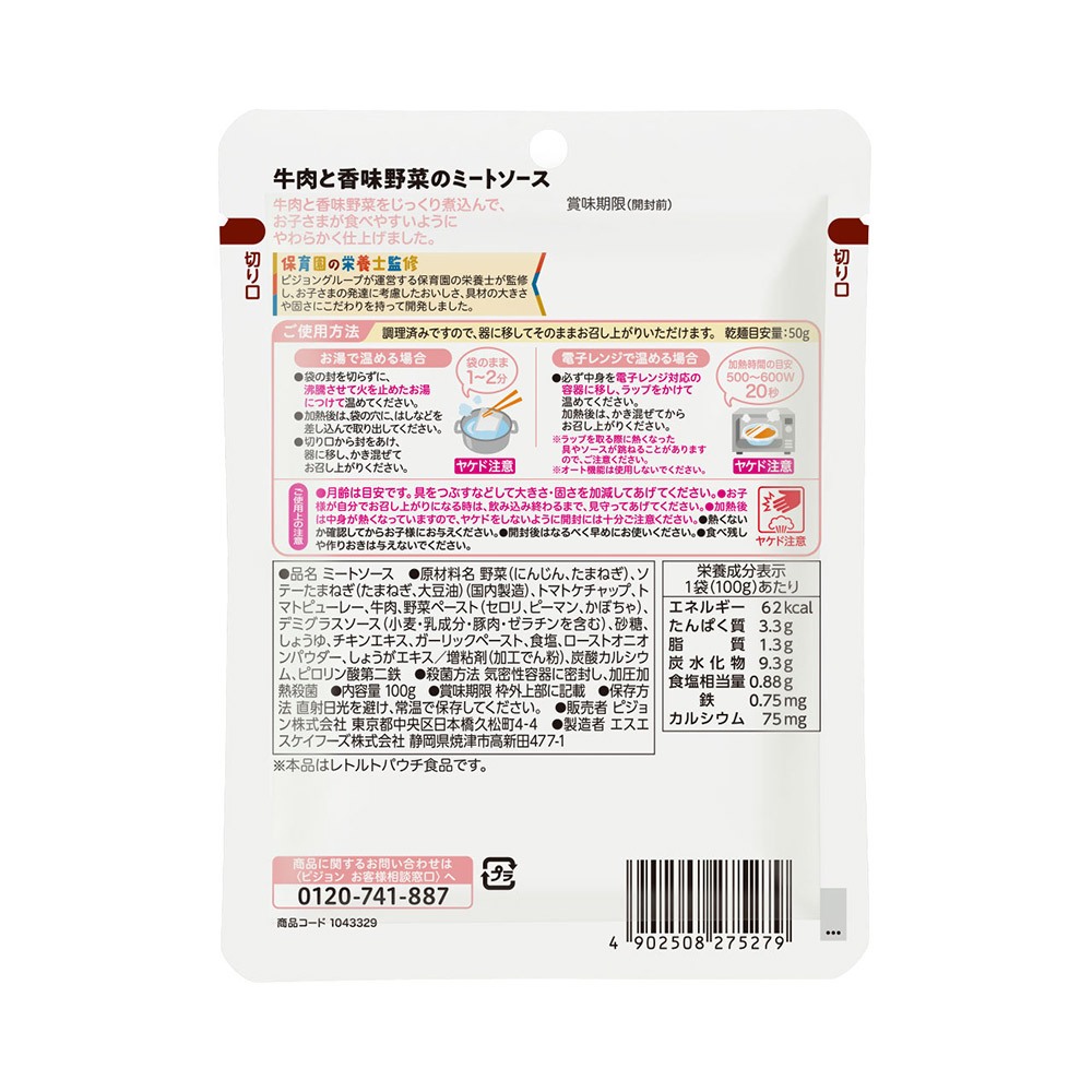 保育園の栄養士監修 幼児食レトルト 牛肉と香味野菜のミートソース 1才6ヵ月頃~