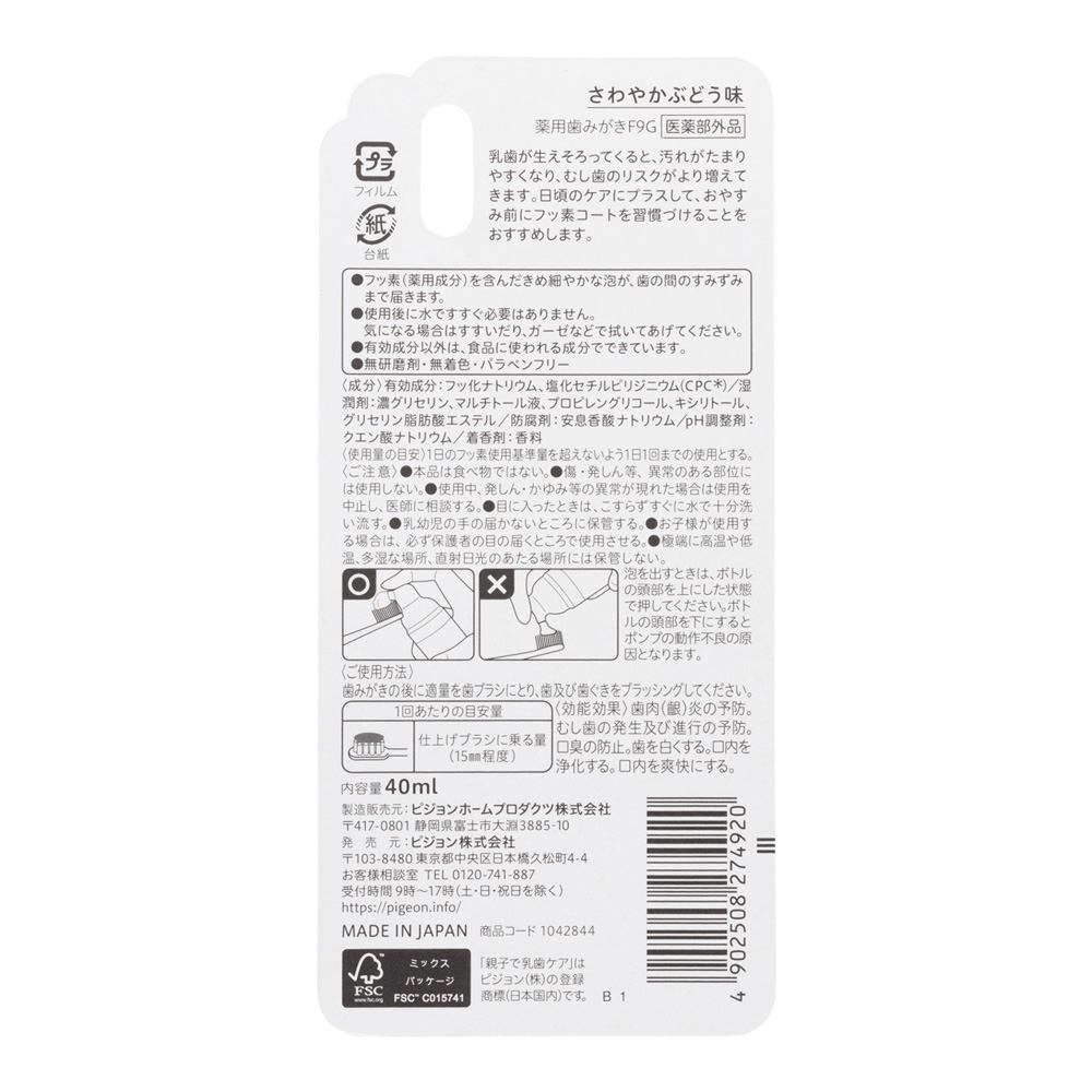 おやすみ前のフッ素コート 950ppm さわやかぶどう味 2才頃~