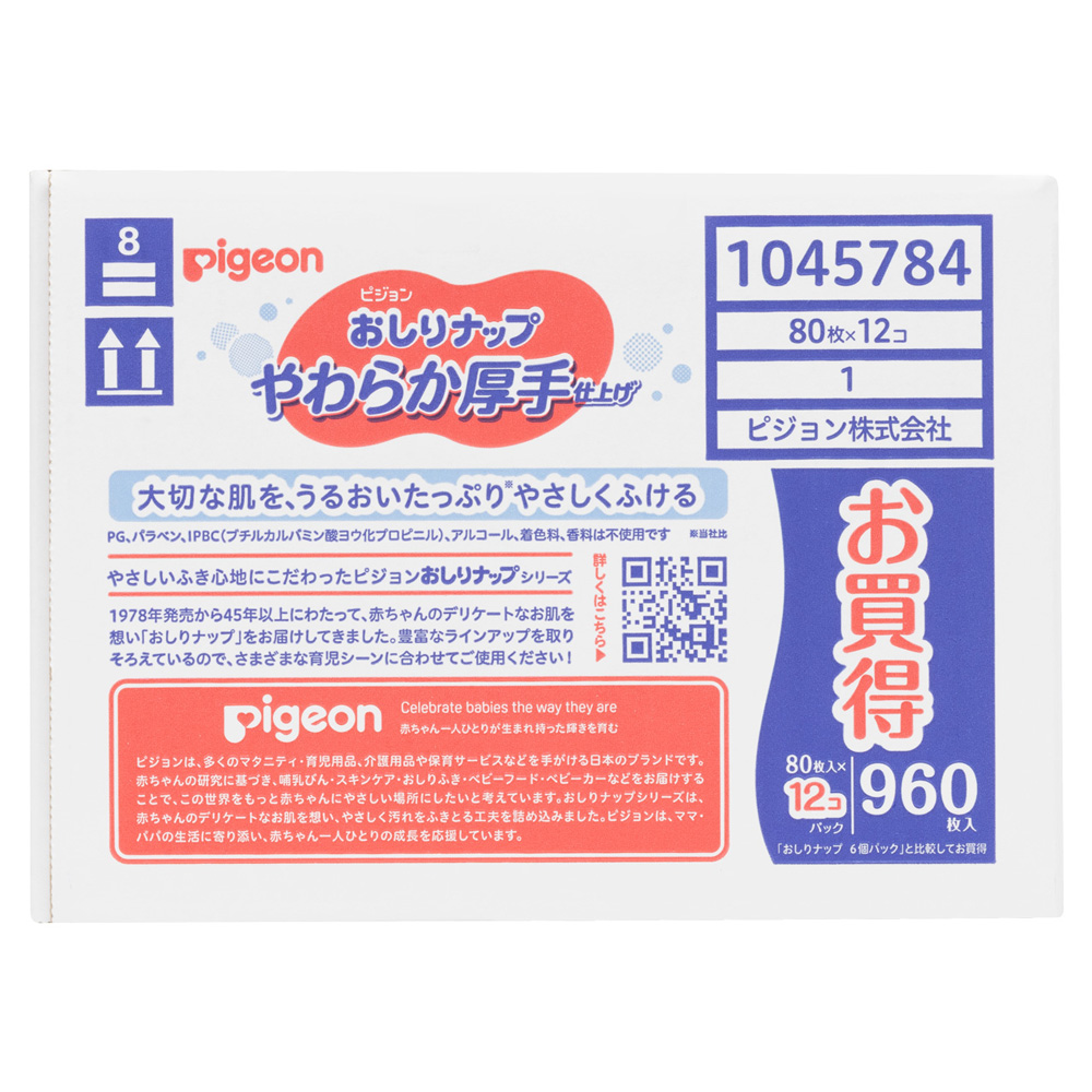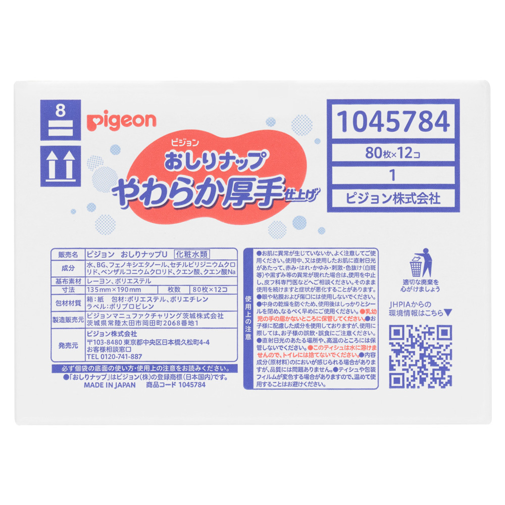 おしりナップ やわらか厚手仕上げ 純水99% 80枚 12個入 0ヵ月~