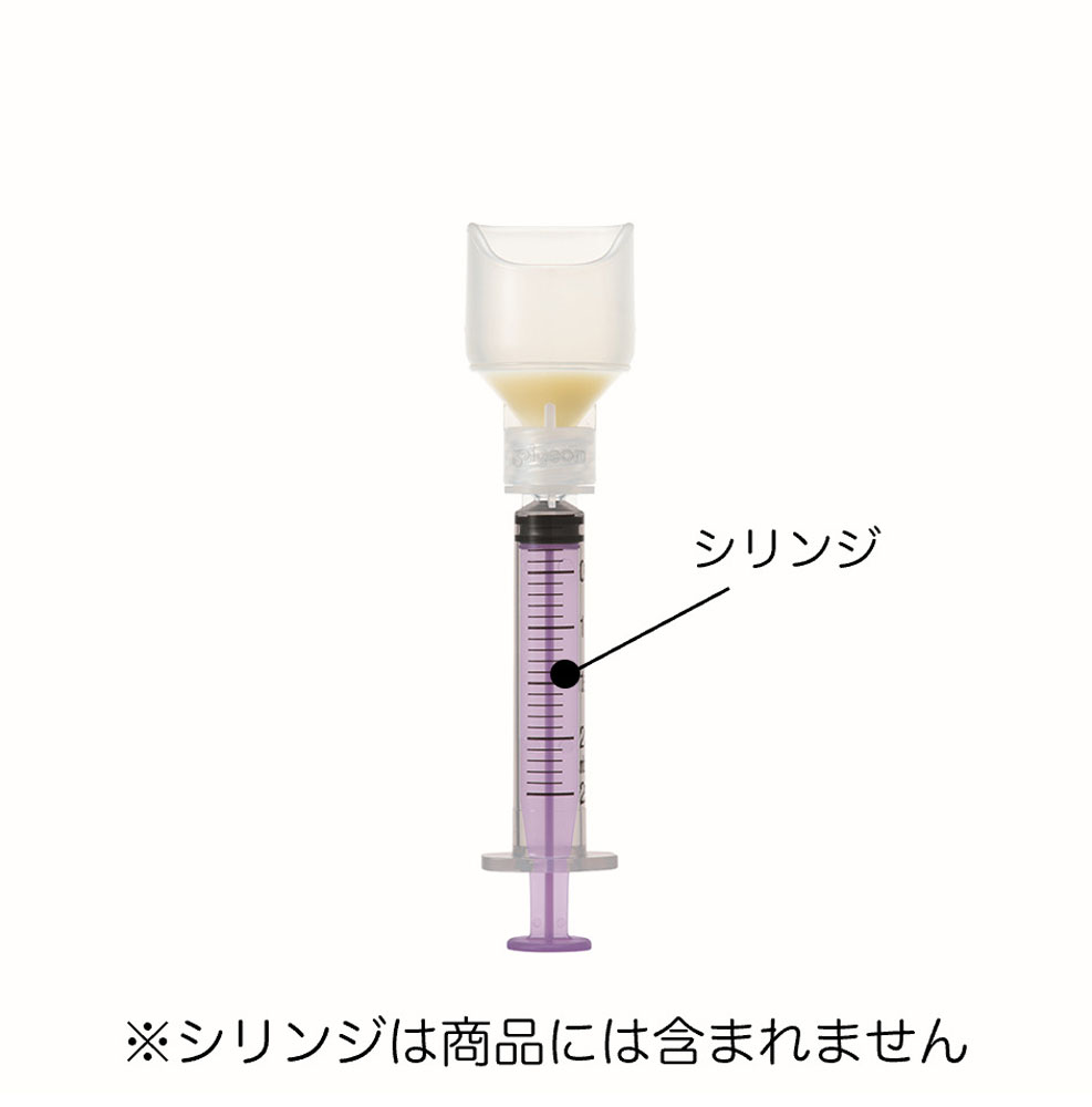 病院で使う栄養シリンジに直接接続できるので、初乳を移し替える手間がなく、より衛生的に、無駄なく赤ちゃんに初乳を届けられます。