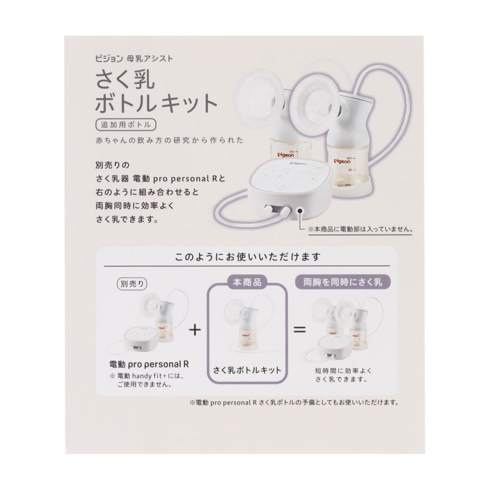 ピジョン母乳アシスト さく乳器 電動pro personal Rに組み合わせることで、両胸をさく乳できるようになるボトルキット。